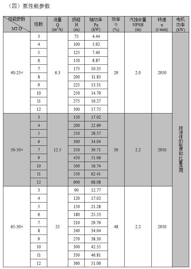 MT-D系列磁傳動多級泵是在多級泵的基礎上加磁傳動裝置而成,其性能參數和安裝尺寸與同型號的D型多級型基本相同。